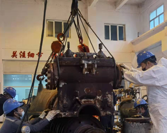 待大蓋被成功吊起后,又會小心翼翼地操控著冠航手拉葫蘆,將大蓋緩緩放置到提前準備好的合適存放位置上。整個過程中,每一個動作、每一個細節(jié)都是為了防止大蓋出現損壞,畢竟大蓋的完好與否關乎著后續(xù)維修工作能否順利開展以及汽輪機能否再次高效投入運行呀。